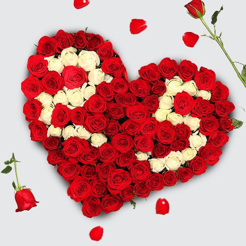 Be the most romantic person in your loved ones eye on Valentines Day by sending this Admirable Number Series Arrangement of 50 Red N White Roses Heart and gain appreciation for your choice.