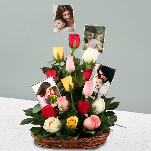 On this mothers day frame all those lovely photos of your mummy and you with this Amazing Basket Arrangement of 4 Personalised Photos and 15 Mixed Roses and give her a surprise.