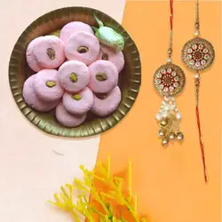 Rakhi with Haldiram Soan Papri 400 Gms with Roli Tika, Chawal (Weights are in Gross)