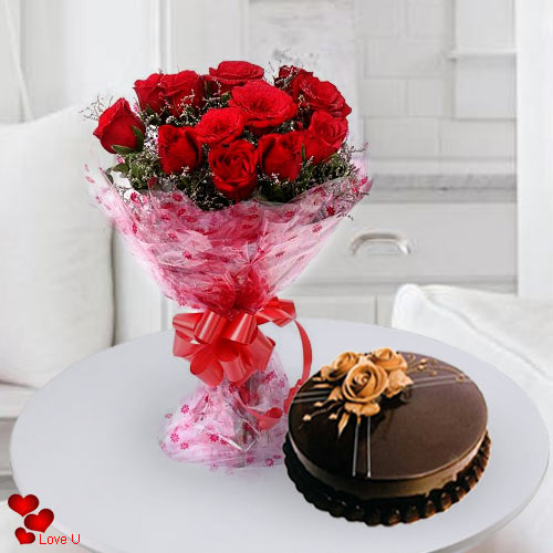 Speak out the words of love with this eternal love special dozen of Dutch Red Roses complemented with 5 Star Bakery Cake from 5 star Hotel Bakery weighing 1 Kg. (Limited Cities)
