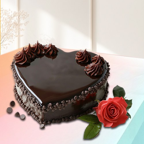 Your passionate love is best being expressed through this Love Shape Chocolate Cake 1lb and 1 Red Rose, that will indeed show your love and affection for sweetheart.