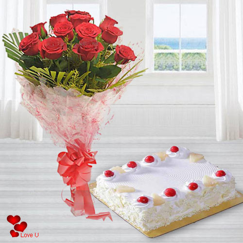 12 Dutch Red Roses with 1 Kg. Eggless Cake