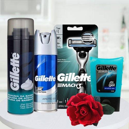 Pack of shaving razor, foam, deodrant and after shave gel from Gillette. An ideal gift for any man.