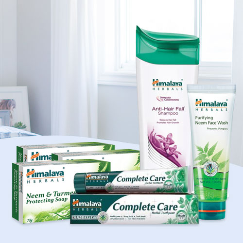 This gift set has: � Himalaya Neem and Turmeric Soap � Himalaya Anti Hair Fall Shampoo � Himalaya Complete Care Toothpaste � Himalaya Purifying Neem Face Wash
