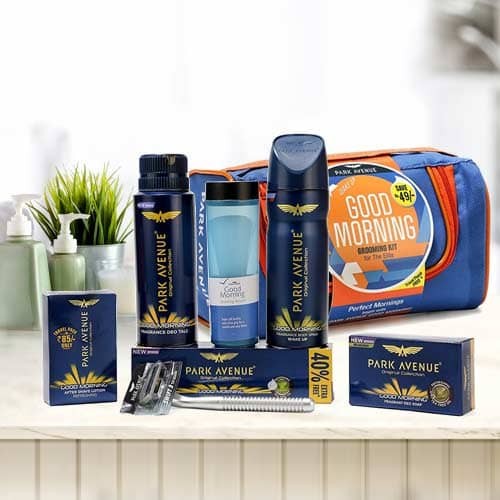 Feelings are delivered perfectly when you send this Feel Better Park Avenue Mens Grooming Kit and spread your love in the lives of the people dearest to you. Details: 1. Item: Park Avenue Fragrance Body Spray 150 ml, Soap 125g, Deo Talc 100g, Shaving Cream 84g, After Shave Lotion Travel Pack 50ml, Razor 1n, Shaving Brush 1n and a Travel Pouch. 2. Brand: Park Avenue 3. Country of Origin: India 4. Item Weight: 740 g