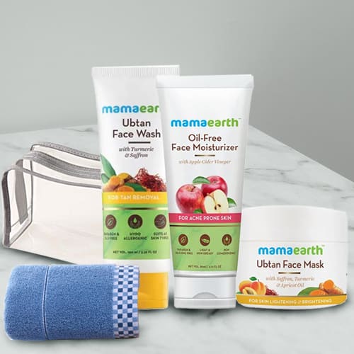 Render happy moments to your loved ones with this Adorable Mamaearth Natural Face Care Kit with Soft Face Towel N Pouch and frame it forever in your memory and heart. Details: 1. Items: Mamaearth Ubtan Face Wash with Turmeric N Saffron, Oil Free Face Moisturizer with Apple Cider Vinegar, Ubtan Face Mask, Soft Face Towel and Toiletry Pouch. 2. Brand: Mamaearth 3. Certified Toxin Free: Dermatologically tested, hypoallergenic, free from sulfates, paraben, SLS, mineral oil, petroleum, artificial preservatives, colors and fragrances 4. Country of Origin: India
