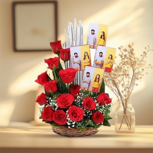 Moments turned out to be very special by ordering this Magnificent Display of 15 Red Roses with 4 Personalized Photos in Basket and make others feel happy.