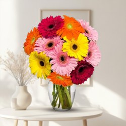 Buy this beautiful Arrangement of 24 Multi-Hued Flowers consisting of 5 Carnations, 14 Roses, 5 Gerberas to be presented to the ones who matter most in your life and convey your gratitude to them.