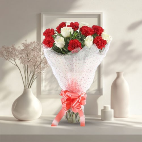 Gift this 8 Roses N 7 Carnations Bunch to your dearest ones and let them know how much they matter in your life.
