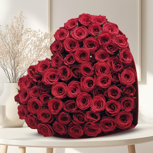 51 Exclusive Dutch Red Roses in Heart Shaped Arrangement
