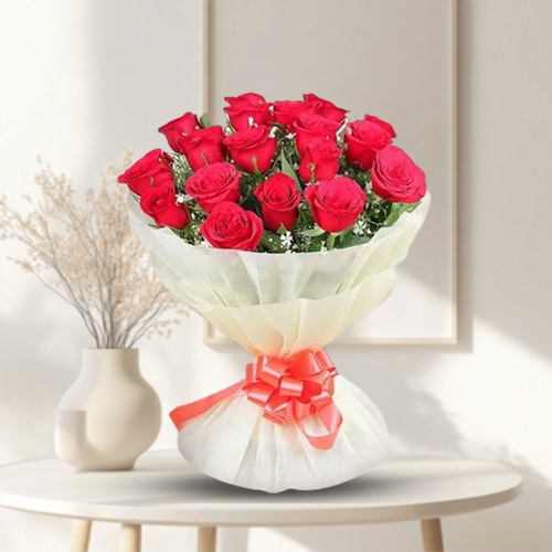 Make this an extraordinary gift, made up of 18 Exclusive Dutch Red Roses Bouquet Nicely Wrapped, a good means of communication of your love and deep affection, and tell your instictive heart to your beloved with this on Valentine.
