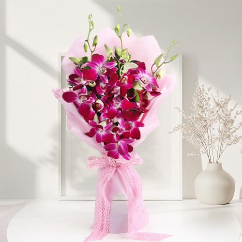 Experience the magic of nature with the Graceful Purple Orchid Delight, a mesmerizing bouquet that radiates energy and charm. Featuring 3 luxuriant purple orchid stems, this arrangement is a beautiful token of admiration and love. Each stem was handpicked to ensure uncompromising quality and intense color vibrancy. The purple orchids make a statement piece in any room, offering a pop of color that redefines elegance. Perfect for gifting or treating yourself, this bouquet is an embodiment of grace and sophistication. Whether youre celebrating a milestone or expressing heartfelt gratitude, this bouquet fits every occasion. The orchids unique beauty is complemented by their delicate aroma, enhancing any space theyre in. Packaged with care, these orchids arrive fresh and ready to impress. The beauty of each bloom captures the essence of natures artistry. With timeless allure and a modern twist, these orchids transcend traditional floral gifts. The Vibrant Purple Orchid Delight brings an infusion of freshness and vibrancy wherever they are placed. A thoughtful gift that tells your story without saying a word. Ideal for enhancing any interior with their striking presence and serene elegance. Watch as these orchids transform ordinary moments into treasured experiences.