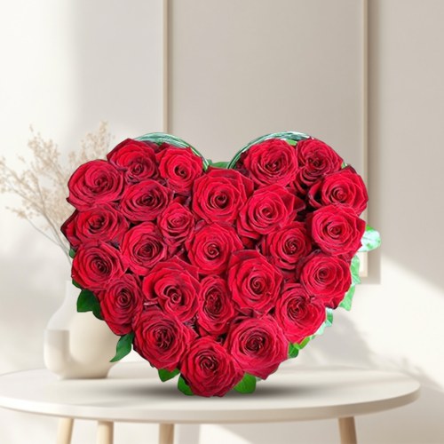 25 Exclusive Dutch Red Roses in Heart Shaped Arrangement