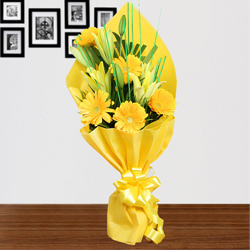Order online this Pristine Magic Moment Bouquet for the people who deserve your love and special attention. To make an exceptional Bouquet we have chosen 18 Yellow Roses designed with Fillers and covered with Tissue.