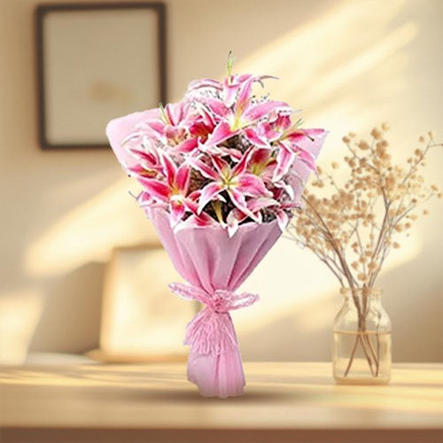 Order Online to Send this Mesmerizing Bouquet of 10 Pink Lilies for the delight of your loved ones.