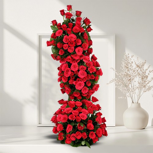 Enrich the flavour of love on Valentines Day with this gift of Eye-Catching Red Rose Arrangement (5 ft long - 150 Roses) and see the joy it brings to the life of the recipient.