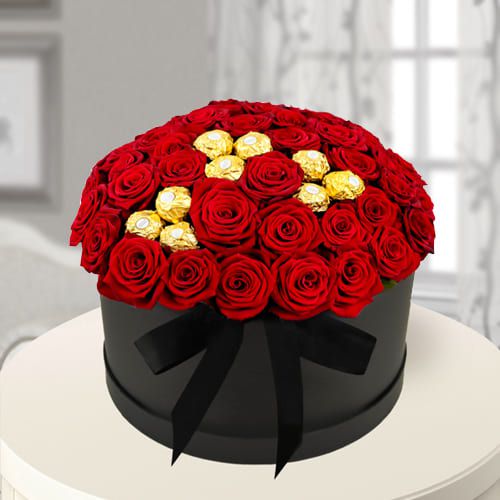 Create wonders in the life of the people you love by sending this Amazing Box of 50 Red Roses n 15 pcs Ferrero Rocher and make them your fan.
