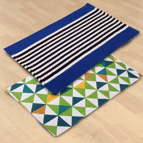 Make others feel special as you treat them with this Soothing Set of 2 Modern Cotton Printed Rug in a very very special way. This product has following features: 1. Product: Home Modern Cotton Printed Rug Set of 2 2. Size: 45x70 N 50x80 Cms 3. Shape: Rectangular 4. Colour: Blue and Green 5. Material/Fabric: Cotton 6. Antiskid (Yes/No): Yes 7. Weave Type: Hand-Loomed 8. Washable (Yes/No): Yes 9. Stain Resistant: Yes