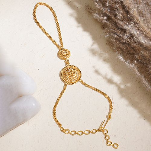 Experience opulence with our Elegant Regal Handpiece, meticulously fashioned to bring a sense of heritage and allure. Crafted with precision, this golden haathphool features elaborate details that embody the richness of traditional jewelry, now tailored for contemporary tastes. Its sophisticated golden hue adds a majestic flair to any ensemble, making it ideal for weddings, festivals, or any special occasion where you wish to stand out. The luxurious hand harness elegantly decorates your hand, creating a statement piece that promises compliments. Designed for comfort and elegance, this piece seamlessly pairs with both traditional and modern outfits. Remember to spot-clean and store separately, avoiding water and perfumes to maintain its intricate beauty.