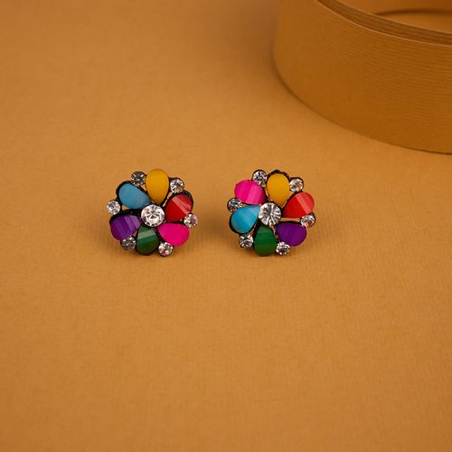 Step into a world of vibrant style with these stone-studded flower earrings. Each piece is a testament to quality craftsmanship, featuring colorful gemstones arranged in a beautiful floral pattern. Designed for versatility, they can effortlessly elevate both casual and formal outfits. The stones catch the light beautifully, ensuring a sparkling effect that highlights your face with every turn. With their comfortable fit, you can wear them throughout the day without a hint of discomfort. These earrings are not only visually stunning but also symbolize a connection to nature�s artistry. A perfect gift idea for birthdays, anniversaries, or simply as a thoughtful gesture, they�re certain to be cherished by the recipient. These earrings will stand the test of time both in style and durability, ensuring you have a timeless piece in your collection. Add a splash of color and elegance to your everyday look or save them for special occasions�they�re as versatile as they are beautiful. Create unforgettable moments with these unique blossoms that will forever remind you of the beauty in diversity.