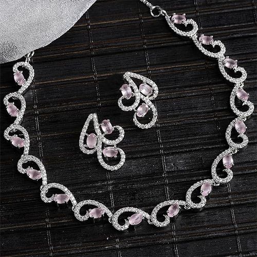 Celebrate elegance with our exquisite Rhodium-Plated Necklace and Matching Drop Earrings Set. Adorned with Silver-Toned White Cubic Zirconia stones meticulously studded for unparalleled brilliance, this ensemble radiates sophistication. The necklaces intricate design and the earrings graceful drops effortlessly enhance any attire, making them perfect for all occasions. Whether its a birthday, anniversary, or just to show appreciation, this set is a timeless gift that symbolizes beauty and grace. Elevate the style quotient of your loved ones with this stunning ensemble, a gesture sure to be treasured and cherished for years to come.