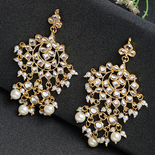 Step into a world of refined elegance with these stunning Kundan and pearl earrings. Masterfully designed to blend traditional beauty with modern sophistication, these earrings feature gleaming Kundan stones and luminous pearls. The harmonious interplay of these elements offers a captivating look, perfect for enhancing both casual outfits and formal attire. Carefully crafted with a keen eye for detail, these earrings promise to be a treasured piece in any jewelry collection. For optimal care, store them separately in a jewelry box, away from water and perfumes. Occasional spot-cleaning will help retain their sparkle and intricate detailing. These earrings are more than just an accessory; they are a testament to exquisite craftsmanship and style, making them an unforgettable gift for someone special.