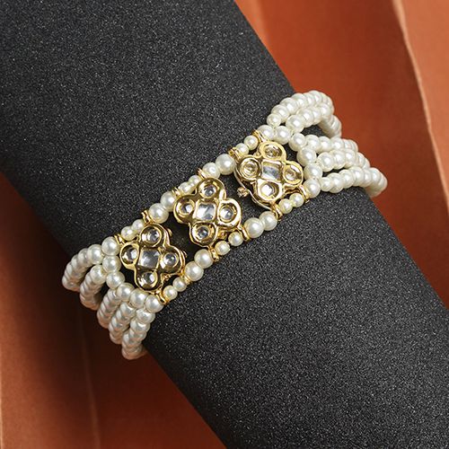 The Kundan and Pearl Bracelet is a masterpiece that combines timeless beauty with modern sophistication. Adorned with shimmering Kundan stones and lustrous pearls, it offers a captivating mix of textures and hues. Perfect for both special events and everyday wear, this bracelet effortlessly enhances any look. Each piece is crafted with exceptional care, reflecting the rich tradition of Kundan jewelry. To keep it looking its best, store it separately and shield it from water and harsh chemicals. Regular spot-cleaning maintains its radiant shine and intricate features. This bracelet is more than a piece of jewelry; it�s a symbol of elegance and refinement, making it a cherished gift for any occasion.