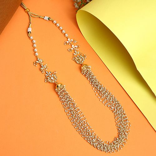 The Trendy Pearl Jhumki Necklace is a beautiful accessory that radiates elegance and charm. The necklace features intricate jhumki pendants embellished with lustrous pearls, creating a captivating look. Whether for a special occasion or to add a touch of sophistication to your everyday attire, this necklace is sure to impress. Expertly crafted with detailed embellishments, it showcases the artistry of traditional jewelry. To keep this piece looking its best, store it in a separate jewelry box and avoid contact with water and harsh chemicals. Regular cleaning will help preserve its luster. Its an exquisite gift for anyone who appreciates classic beauty.