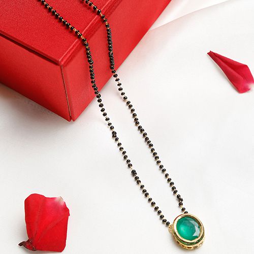Immerse yourself in elegance with this Elegant Kundan Mangalsutra with Radiant Stones. Featuring radiant Kundan stones set in a gold-plated design, this piece offers the perfect blend of traditional and modern aesthetics. With its finely detailed craftsmanship, it�s an ideal choice for adding a touch of sophistication to any attire, be it for special events or daily wear. The bright stones catch the light beautifully, making this mangalsutra a standout accessory in your collection. To retain its lasting shine, spot-clean as needed, store in a dedicated box, and avoid fragrances and water. This mangalsutra is not only a piece of jewelry but also a timeless token of grace and style.