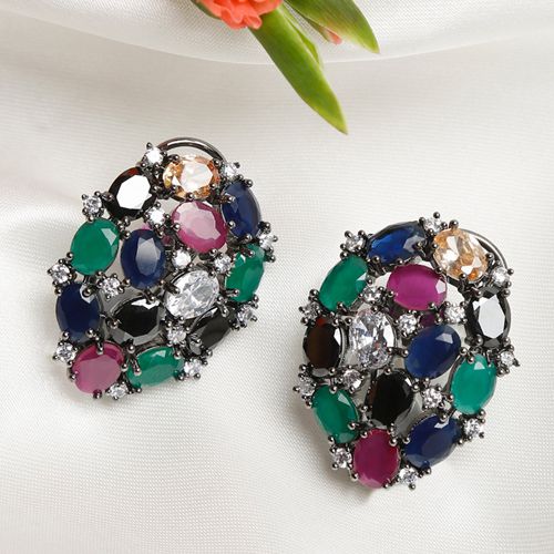 Dazzle your way into any room with the Dazzling Multi-Hue Earrings. These stunning studs feature an enchanting blend of Stones in various alluring shades, set in a sophisticated design. The multi-color stones add a splash of fun and elegance to any outfit, making them perfect for any occasion. From casual lunches to formal dinners, these earrings will be your go-to for an added touch of glamour. Easy to mix and match with different styles, they bring out the best in your wardrobe. To preserve their sparkle, we recommend spot-cleaning and storing them separately. Keep away from water and perfumes to maintain their brilliant hues and longevity. Turn heads and make a statement with these beautiful, vibrant earrings.