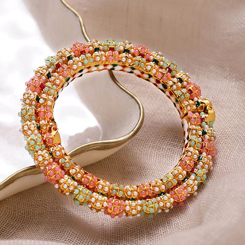Introducing a gracefully designed beaded Meenakari bangle that combines the rich heritage of Meenakari artistry with a touch of contemporary flair. Each bangle is meticulously crafted with vibrant beads and detailed enamel work, making it a standout piece that complements any attire. Whether it�s for festive occasions or casual outings, this bangle adds a unique charm to your style. Take special care by gently cleaning and storing it in a separate box to retain its intricate beauty. Keep it away from water and perfumes to maintain its striking design and vibrant colors. A perfect gift for those celebrating cultural elegance.