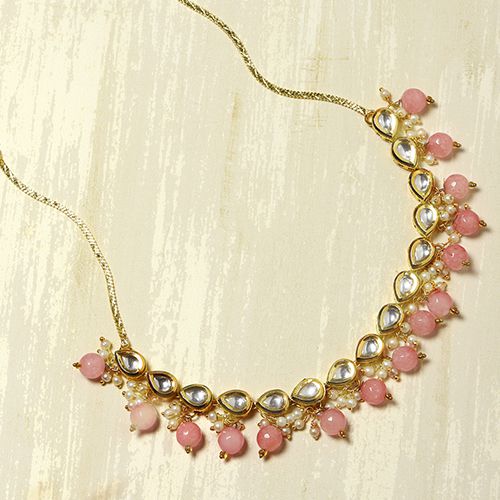 Experience ethereal beauty with the Radiant Kundan Choker, a flawless blend of tradition and trend. This choker showcases an array of sparkling Kundan stones that catch the light beautifully, adding an elegant shine to your neckline. Ideal for weddings, festivals, or any grand celebration, it elevates your outfit with its refined and sophisticated design. Crafted with great attention to detail, this piece ensures lasting quality and a stunning finish. To keep its brilliance, safeguard it in a soft-lined jewelry case and protect it from chemicals and moisture. With this choker, embrace the grace of heritage and the allure of modern fashion.