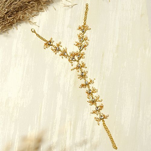 The Elegant Kundan Stone Cuff is a breathtaking piece that radiates sophistication. Adorned with glittering Kundan stones, it complements both traditional and contemporary styles effortlessly. This bracelet is perfect for adding an elegant touch to any outfit, whether its for a grand occasion or a chic night out. Made with premium materials, it ensures longevity and resilient beauty. To keep it at its best, store it in a soft pouch and avoid contact with moisture and harsh chemicals. This cuff is not just an accessory but a testament to masterful craftsmanship and timeless charm.