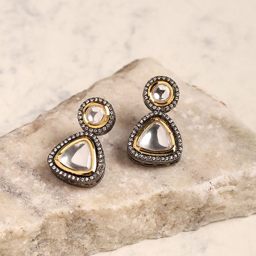 Elegant and timeless, the Dual Tone Polki Earrings are a glamorous addition to any jewelry collection. Featuring meticulously set dual-tone Polki stones, these earrings exude a refined sparkle that elevates both traditional and contemporary outfits. The fine artistry is evident in every detail, making these earrings ideal for any special celebration or formal event. Crafted with high-quality materials for longevity, they are as durable as they are beautiful. Keep them looking their best by storing them in a cushioned jewelry box and avoiding contact with moisture and harsh substances.