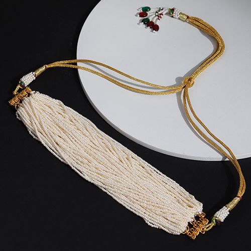 Discover the ultimate sophistication with our Pearl Choker. This exquisite piece seamlessly merges classic pearls with a sleek, contemporary design, making it an ideal accessory for both formal and casual wear. The glistening pearls not only enhance your natural beauty but also add an unparalleled elegance to your wardrobe. Crafted with precision from high-quality materials, the choker is built to last. To maintain its pristine condition, ensure it�s stored in a lined box and kept away from water and strong chemicals. Elevate your style quotient with this timeless treasure.