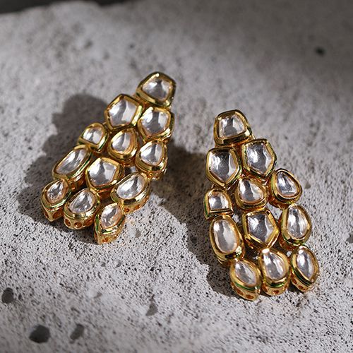 Step into a world of elegance with this beautiful pair of Kundan earrings. Designed for the modern woman with a love for traditional aesthetics, these earrings radiate with the glow of intricately placed Kundan stones. Perfect for both grand occasions and simple gatherings, they add a touch of class to any outfit. The superior craftsmanship and refined design make these earrings a timeless piece to cherish. Handle them with care by spot cleaning and keeping them in a separate box to protect their delicate brilliance. Avoid contact with perfumes and water to ensure they remain as stunning as the day you received them.