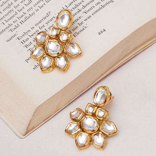 Introducing a gift of classic elegance with a pair of Kundan earrings, perfect for any jewelry enthusiast. Each earring showcases beautifully set Kundan stones in a refined design that promises versatility, complementing both casual and formal attire. The timeless appeal of these earrings, coupled with their sparkling brilliance, makes them a standout addition to any outfit. Wear them to elevate your everyday look or to dazzle at special occasions. For care, gently spot-clean and store in an individual box away from fragrances and water to ensure they retain their exquisite craftsmanship and gleam.