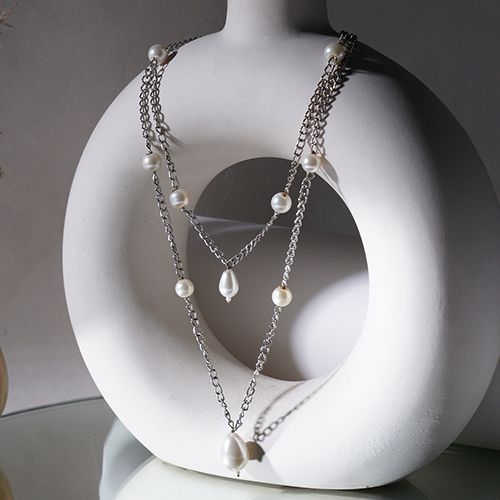 Discover the captivating charm of the Timeless Pearl & Silver Layers necklace. This incredibly versatile piece masterfully meshes the traditional allure of pearls with the modern appeal of silver. The elegant layers of pearls cascade beautifully around your neck, while the silver accents add a touch of contemporary flair. Ideal for complementing both casual and formal attire, this necklace effortlessly adapts to any look. Its sophisticated design is perfect for anyone who treasures refined, understated elegance. For long-lasting wear, ensure to spot-clean, store in a separate box, and avoid contact with fragrance and water.