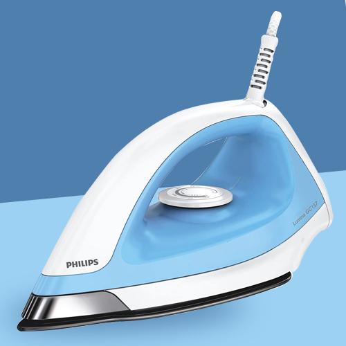 Bring the people you love closer to your heart by gifting this Classic Philips Dry Iron in White n Blue loaded with your affection and fondness for them. This product features include: Details: 1. Product Content: Dry Iron 2. Brand: Philips 3. Color: Blue 4. Weight: 800 Grams 5. Wattage: 1100 Watts 6. Voltage: 240 Volts 7. Package Dimension (LxWxH): 26 x 15 x 12 cm 8. Warranty: 18 Months 9. Country of Origin: China.