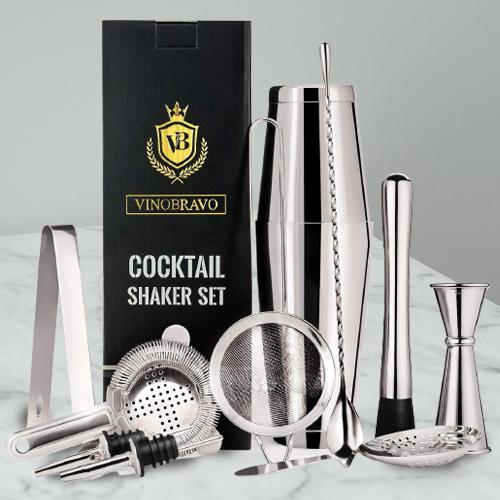 Click to deliver this Outstanding Cocktail Shaker Bar Set that delivers happiness instantly when unwrapped. Details: 1. Package Content: Shaker Tin, Hawthorne Cocktail Strainer, Double Jigger, Mixing Spoon and Drink Muddler. 2. Color: Silver 3. Material: Stainless Steel 4. Dimension (LxWxH): 32.5 x 11.4 x 11.4 Cm 5. Weight: 1.85 Pounds. 6. Special Feature: Dishwasher Safe 7. Country of Origin: India.