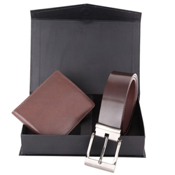 Liven up the mood of your special man by gifting him this Tony Composite of Wallet and Belt that carries all the elements to bring happiness to him. Arrayed out of refined Brown Leather, this composite, decked up in a nice Black Box, works perfectly for uplifting mood.