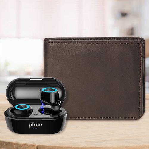 Deliver happiness by gifting this Stylish Mens Leather Wallet; brown colour with multiple card slots n coin pocket from Rich Born with PTron Bassbuds Wireless Bluetooth 5.0 Earbuds to your relatives and friends.
