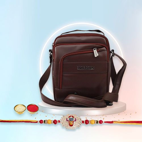 This gift combo contains: � An AD Sreenath Rakhi by Rakhi Sutra (DFRK8044WO) � A Richborn Crossbody Foam Sling Bag for Gents (Dark Brown) � Complimentary Roli Tika N Chawal � Complimentary Message Card with Free Rakhi