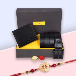 This gift combo contains: � An Evil Eye Rakhi by Rakhi Sutra (EVD0475) � Hornbull Leather Wallet N Belt Combo for Men (Brown) � Complimentary Roli Tika N Chawal � Complimentary Message Card with Free Rakhi
