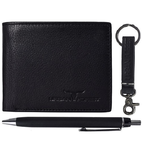 Send lovely wishes with this Fabulous Urban Forest Wallet with Keyring N Pen Trio for Men and spread love. Product Details: a) Item Details: Leather Wallet with Keyring N Pen Combo b) Brand: Urban Forest c) Category: Gents d) Material: Leather e) Color: Black f) Country of Origin: India