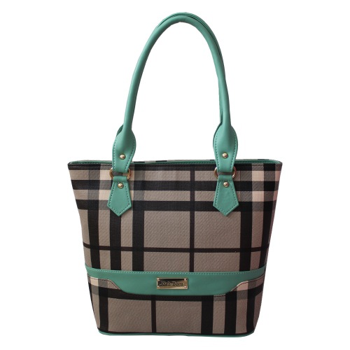 Product Details: a) Item Details: Ladies Shoulder Bag b) Brand: Richborn c) Category: Ladies d) Material: PU e) Color: Multicolor Checkered Bag with Sea Green Handle f) Partitions: Double Partitions