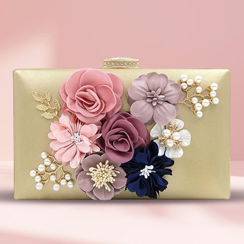 This is a gift of: � Floral Evening Clutch for Women (Gold)