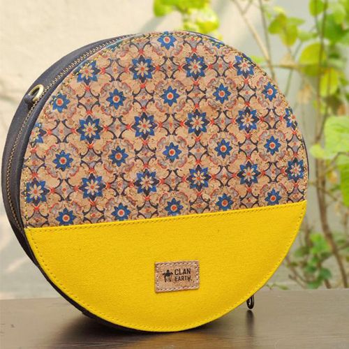 This is a gift of a Forest Owlet Round Sling Bag in Sunflower Yellow. Crafted from sustainable cork with a contemporary design, it is meticulously handcrafted by skilled artisans in Kolkata. Stylish and functional, the bag features water-resistant fabrics and cotton interlinings, making it completely vegan, plastic-free, leather-free, and cruelty-free. To maintain, gently clean with a cloth and cold water, and dry naturally. Store in a dust bag with dehumidifiers and occasionally sun dry. Perfect for those who appreciate eco-friendly fashion and modern craftsmanship.