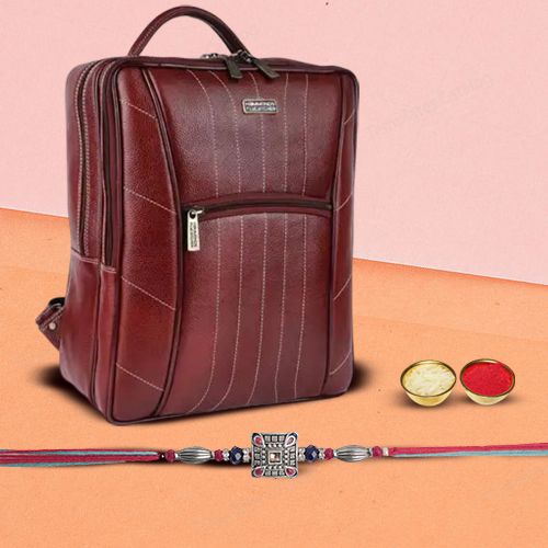 This gift combo contains: � A Kundan Rakhi by Rakhi Sutra (QUR7866Y) � Leather Laptop Backpack (Brown, Fits up to 16 Inch Laptop) � Complimentary Roli Tika N Chawal � Complimentary Message Card with Free Rakhi