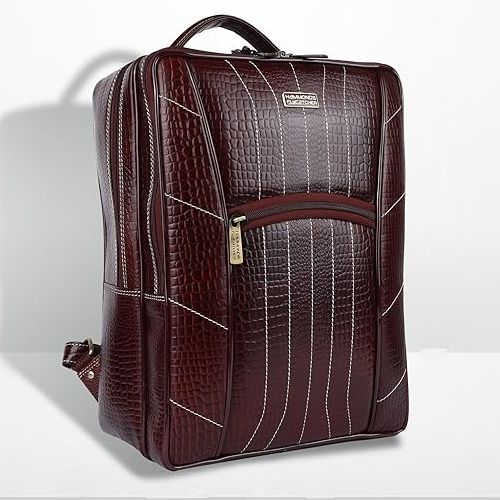 Elevate your professional style with this Remarkable Leather Laptop Backpack in Croc Brown colour. Crafted with the finest quality leather, this stylish briefcase exudes sophistication and elegance. Designed to fit up to a 16-inch laptop, this versatile bag is perfect for carrying your essentials in style. The rich brown color and croc texture add a touch of luxury to your everyday look, whether youre heading to the office or traveling for business. With multiple compartments and pockets, you can easily organize your belongings and keep everything in place. The adjustable shoulder straps provide comfort and convenience, making it easy to carry around all day. Make a statement with this elegant brown leather bag that combines practicality with timeless design, perfect for the modern professional on the go.